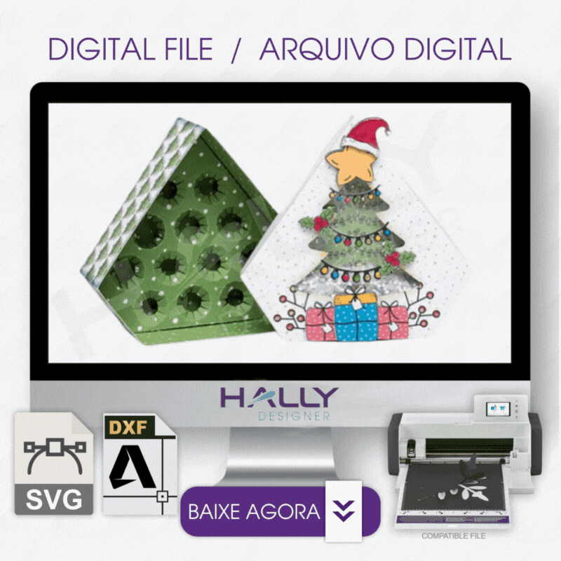ARQUIVOS SVG e DXF Caixa Diamante 12 Doces Natal